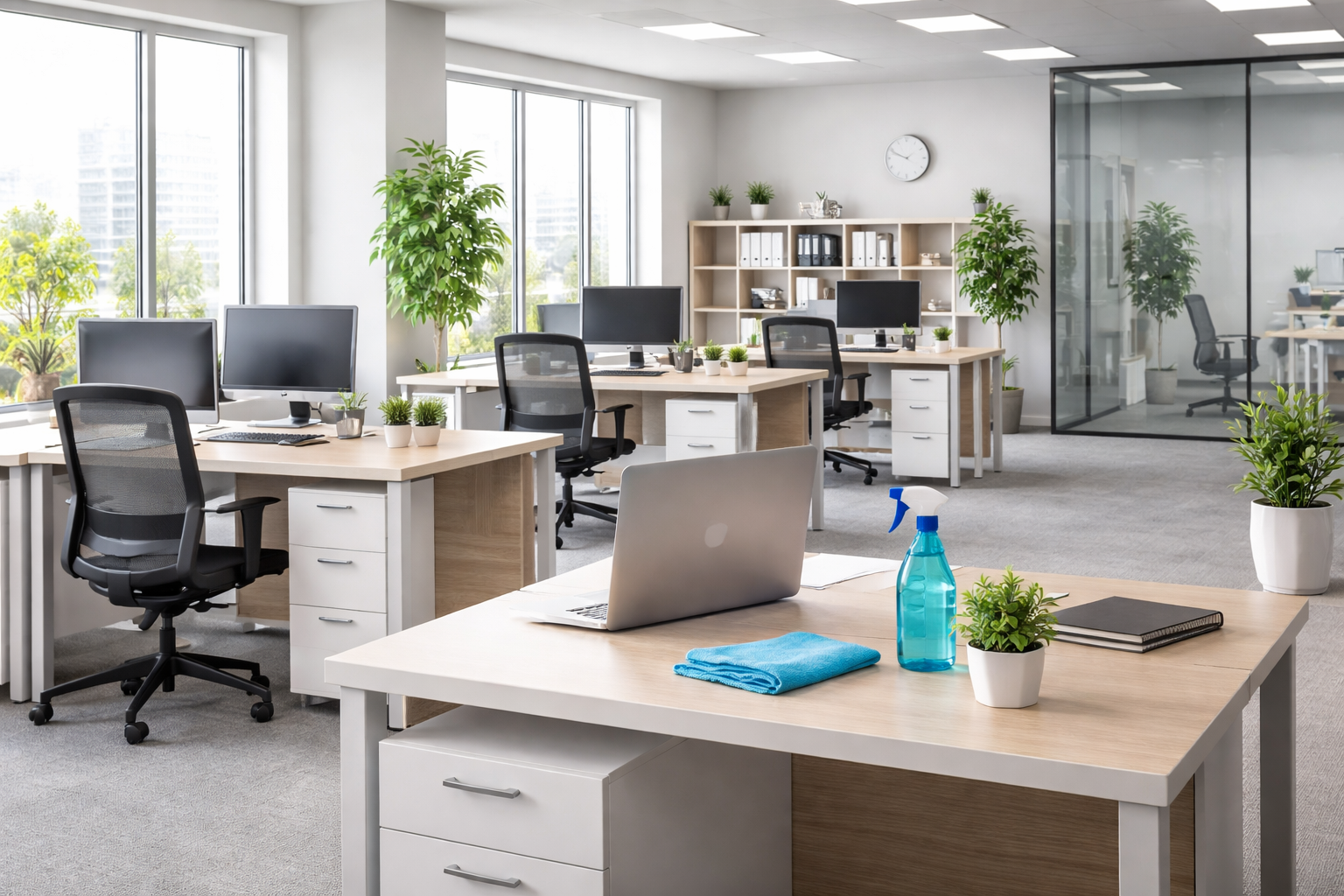 Regular, detailed cleaning of workspaces, meeting rooms, and common areas to ensure a tidy and productive environment. We focus on dusting, sanitizing surfaces, vacuuming, and waste removal to maintain a professional atmosphere daily.
